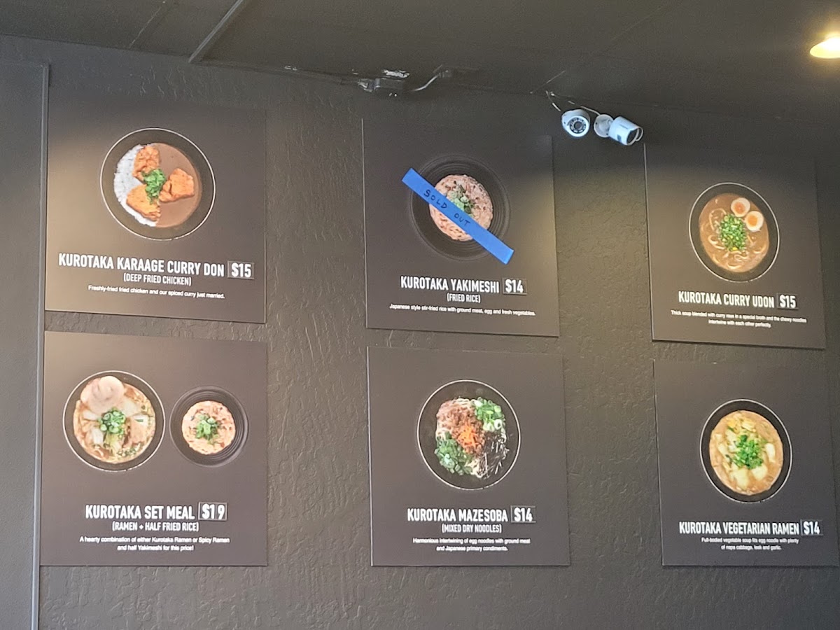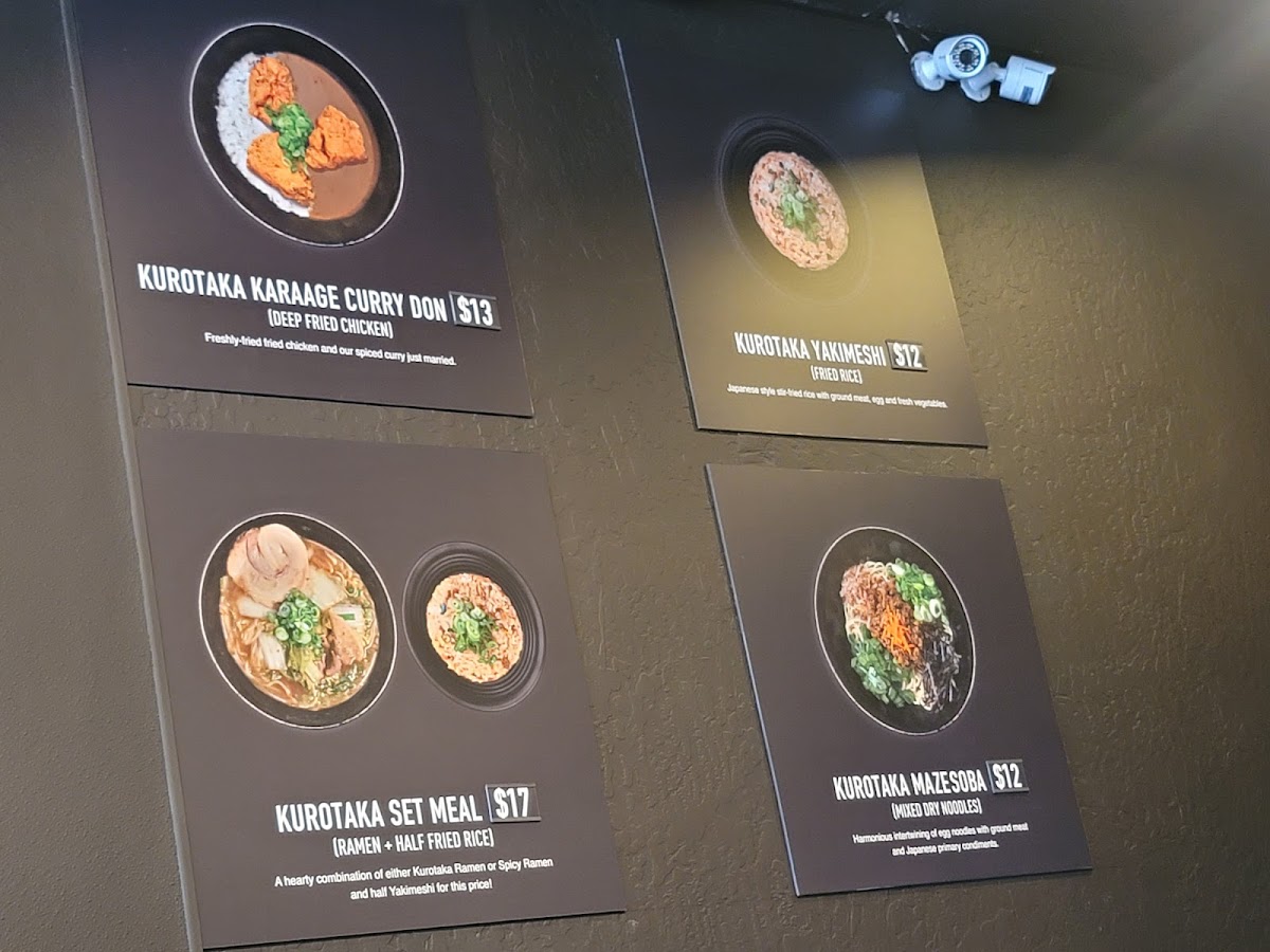 Kurotaka Ramen Menu